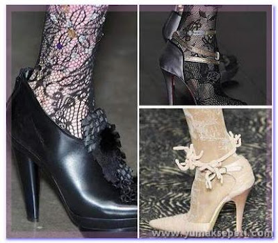 “Dost başa düşman ayağa bakarmış.” Şıklığımızı tamamlayacak en gözde aksesuarlardandır ayakkabılar. Renk renk, çeşit çeşit… Eğer giymek istediğimiz kıyafetin altına giyecek uygun bir ayakkabımız varsa gerçekten mutluyuzdur. Erkekler belki bu konuda bizi biraz anlamaktan zorlanıyor ya neyse. 2009 Ayakkabı Modasında en çok göze çarpan şey; açık ayakkabılar içine giyilen çoraplar. Bu moda kesinlikle bana göre değil ama bu tasarımı eminim kendisine çok yakıştırarak kullananlar olacaktır. Yine bir fikir vermesi ve yılın modasından yabancı kalmamak için bir göz atalım…