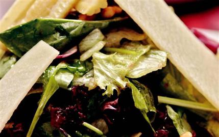 BALZAMİK sirke ve zeytinyağını karıştırın. Salata kabına Akdeniz yeşilliğini alın. Diğer malzemeleri üzerine ekleyin. En üste balzamik sirke ve zeytinyağı karışımını gezdirin.