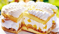 Hazırlanışı:Fırını 200 derecede ısıtın. Kalıbı yağlayın. Kıyılmış cevizi, 75 gr şeker, şurup, yağ ve krema ile pişirin. Hamur için margarin, şeker, vanilya, yumurta sarılarını çırpın. Kalan malzemeleri ekleyip yarısını kalıba dökün. Fırında 8 dakika pişirin. Üzerine cevizli karışımı döküp 5 dakika pişirin. Keki kalıbtan çıkarın. Hamurun kalanını kalıba dökün. 10 dakika fırınlayın. Soğumasını bekleyip 12 eşit parçaya bölün. Fırının ısısını 150 dereceye düşürün. Yumurta aklarını çırpıp kalan şekeri ilave edin. Karışımı sıkma torbasına doldurun ve 12 parçanın üzerine sıkın. 15 dakika fırınlayın. Limon suyunu ısıtın, jelatini içinde eritin. Yoğurt ve şurubu ekleyip soğutun. Kayısıları dilimleyin. Portakal suyu ve nişastayı kaynatın. Kayısı ve likör ekleyin. Soğutun. Krem şantiyi hazırlayın. Yoğurtlu karışım katılaştığında ilave edin. Keki kayısılı karışımla ıslatın ve kremayı sürün. 1 saat soğutun. Üzerine 12 bezeli parçayı dizin.