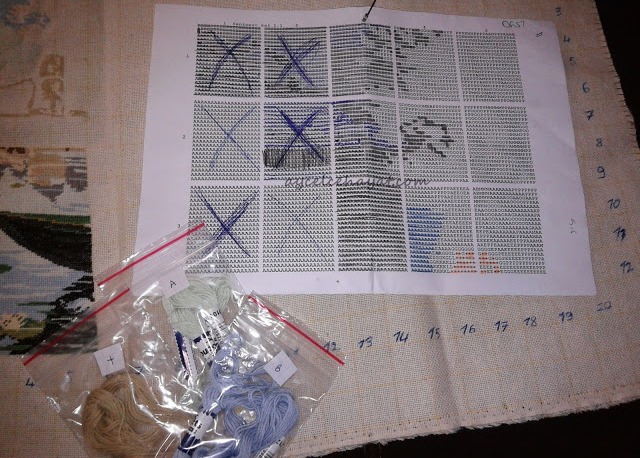 Şemalı goblenlerde şablonun büyüklüğüne göre kumaşta çerçeveyi sayılarla belirleyip sınır çiziliyor. Bu şekilde hangi kutuda hangi renkleri uygulayacağını takip etmek kolay oluyor. Şemadaki şekil ya da harflere karşılık gelen renkteki iplerle minicik deliklere tek tek (/) şeklinde işliyorsunuz.