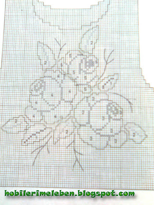 ÖN: Beyaz ile 94 ilmek atalım ve 2 cm. 1/1 lastik çalışalım. Şemayı takip ederek çalışalım. Yaka oyuğunu şemadan ilk oyuk çizgisini takip ederek yapalım.