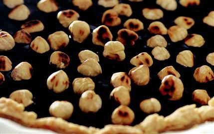 HAMURU hazırlamak için, bir kaba su dışındaki tüm malzemeyi koyarak elinizle yoğurun ve iyice özleştirin. Daha sonra suyu da ekleyip yeniden yoğurun. Hamuru düz bir zemine alarak elinizle ya da bir merdane yardımı ile tart kalıbınızın büyüklüğü kadar açın ve kalıbın kenarlarını da kaplayacak şekilde içine yerleştirin. Üst harcı için, tüm malzemeyi bir kapta iyice karıştırıp kalıptaki hamurun üzerine dökün. Önceden ısıtılmış 200 derece fırında 15-20 dakika pişirin ve ılınmaya bırakın. Bir paket bitter çikolatayı parçalar halinde kırdıktan sonra benmari usulü eritin ve tartın üzerine sürün. Üzerini fındıkla süsleyin. Dilimleyerek servis yapın