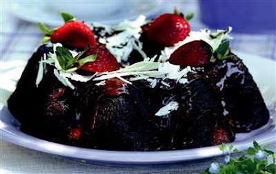 Üzerine benmari usulü eritilmiş bitter çikolata gezdirin. Çilekle süsleyerek servis yapın
