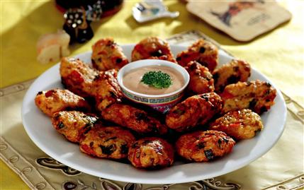 Pirinci tuzlu suda 15 dakika haşlayın ve süzün. Diğer tarafta jülyen doğranmış taze soğan ve kırmızı biber, az çırpılmış yumurta, sarmısak, un, soya sosu, toz kırmızıbiber ve tuzu ilave edip iyice karıştırın. Bu karışımı pirince ekleyin. Yapışmaz yüzeyli bir tavada margarini eritip içine sıvıyağı katıp kızdırın. Harçtan bir kaşık alıp tavaya dökün ve üzerine hafifçe bastırarak arkalı önlü kızartın. İç harç bitene kadar işleme devam edin. Kızarmış mücverleri kağıt havlu üzerine çıkarıp yağını süzdürün ve Çin sosu ile servis yapın.