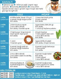 * Öğle ve akşam öğünleri yer değiştirebilir. Ara öğünler atlanılmamalı.