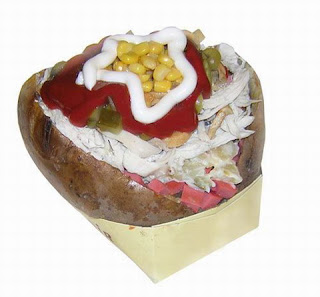 Patates fırında pişirilir. Yarılarak haşlanmış havuç , bezelye ilave edilir. Üzerine de rendelenmiş 1 dilim kaşar peyniri konur.