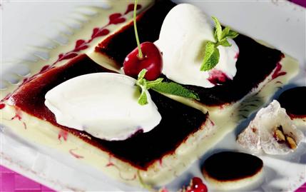 Daha sonra uygun bir tepsiye bir parmak kalınlığında döküp, yayın. Tepsiyi ocak üzerine koyup yüksek ateflte muhallebinin altı iyice karamel rengini alana kadar piflirin. Bu s›rada tepsiyi çevirerek her yerinin piflmesini sağlayın. Kazandibini 1 gün süreyle buzdolabında soğumaya b›rakın. Servis için kare şeklinde kesip tabaklara aıın. Üzerine arzunuza göre dondurma ekleyerek servis yapın.