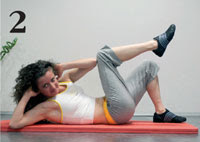 Bu egzersiz için sırtüstü yatar pozisyonunu almanız gerekiyor. Bu sırada dizler bükülü olmalı. Diz 90 derece kaldırılmalı (eller kenetlenmeden ensede) ve vücudun üst kısmı yukarıya doğru gelecek şekilde dizlerinize doğru çapraz kalkmalısınız. Yukarı kalkıldığında derin nefes vermeniz aşağıda ise derin nefes almanız gerekiyor. Nefes alıp vermeniz sakin ve yavaş olmalı. Hareketi yavaş ve kontrollü yapmalısınız. Tekrar sayısı 10.