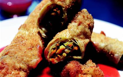 Ayıklanmış lipsosu haşlayın ve suyunu süzün. Elinizle didikleyip bir kenara alın. Zeytinyağını bir tavaya alın ve ortadan ikiye kesilmiş sarmısağı kokusu çıkana kadar kavurun. Küçük küpler halinde doğranmış kabak, havuç ve taze soğanı ilave edip, kavurmaya devam edin. Didiklenmiş balığı ekleyin. Ocağın altını kapatın. Tuz, karabiber, yenibahar ve ince kıyılmış dereotunu ilave edin. Yağsız tavada hafif kavrulmuş dolmalık fıstığı da katıp karıştırın ve soğumaya bırakın. Diğer taraftan yufkayı 8 eşit parçaya bölün. Yufkanın geniş kenarına lipsoslu iç harçtan koyup kalın sigara böreği sarar gibi sarın. Yufkalar ve iç harç bitene kadar işleme devam edin. Daha sonra börekleri önce una, sonra çırpılmış yumurtaya, daha sonra galeta ununa bulayın ve kızgın sıvıyağda kızartın. Servis tabağına alın. Erik sos için erikleri suda 5 dakika haşlayın. Çekirdekleri çıkmış eriği robota alın. İçine bal katın ve robottan geçirin. Börekle servis yapın.