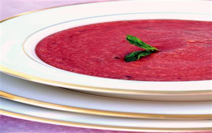 Su hariç tüm malzemeyi blendere koyarak karıştırın. Tüm malzeme inceldiğinde, kıvam alana dek su ekleyin. Buzdolabına koyun ve soğuk servis yapın.