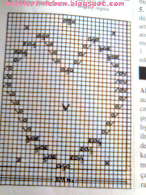 2 no’lu şişler 102 ilmek atalım çift lastik çalıştıştıktan sonra 8 cm. 2/2 lastik çalışalım. 2.5 no.lu şişlere geçelim 1 sıra ters örgü çalıştıktan sonra işimizi tersinde 17 ilmeği eşit aralıklarla artıralım. Elde ettiğimiz 119 ilmek üzerinde kalpli fantazi örgüyü sağdan 1 ilmek, soldan 2 kenar ilmeği yaparak çalışalım. Başlangıçtan48 cm. sonra tüm ilmekleri kapatalım.