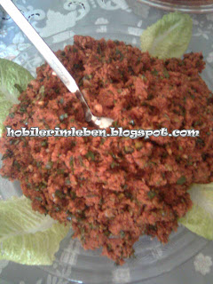 Hazırlanışı:Bulguru 1 su bardağı sıcak su ile ıslatalım (suyunu çekecek şekilde). Bu şekilde suyunu çekmesi için 10 dakika bekletelim. Biz bu arada soğanı ve sarımsağı ince ince doğrayalım. Biber salçasını ekleyelim.Ayrı bir kaba domates, maydanoz, salatalık ve naneyi ince ince doğrayalım. Tüm malzemeleri bir kapta iyice karıştıralım. Nar ekşisi ve yağ ekleyip tekrar karıştıralım ve servis yapalım.
