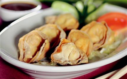 KREP için un, süt, yumurta ve tuzu derin bir kapta çırpın. Yapışmaz yüzeyli tavayı ısıtıp tereyağını eritin. Tavaya krep karışımından 2 çorba kaşığı dökün. Hafifçe sallayıp hamurun tavaya yayılmasını sağlayın. Bu şekilde karışım bitene kadar krepleri hazırlayın. Karidesleri haşlayıp kabuklarını soyun. Tuz ve karabiberle birlikte rondodan geçirip, kıyma yapın. Krepleri 4 cm’lik kareler halinde kesin. Karides kıymasını hamurların içine paylaştırıp mantı şeklinde kapatın. Çok kızgın sıvıyağda kızartın. Tatlı ekşi sosla servis yapın.