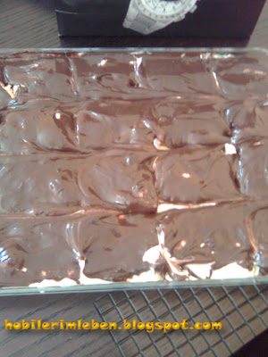 Borcama etimekleri ufak parçalara bölerek yerleştirin ve üzerine karıştırdığımız kremayı dökün. en sonunda çikolata sosunu dökün ve dolaba koyun.Soğumaya bırakın.