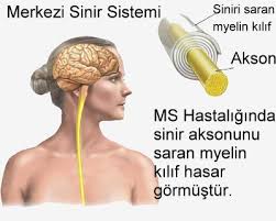 MS ya da Multipl Skleroz genç erişkinleri etkileyen bir hastalık. Genellikle 20 ile 40 arasında ilk belirtilerini verdiğini görüyoruz. Hastalığın nedenini bilmiyoruz. Hastalık beyin, beyincik, omur iliği ve beyin sapı dediğimiz merkezi sinir sistemi yapılarını etkiliyor. Genel olarak miyelin adı verilen sinir liflerinin etrafındaki sinir kılıfının etkilendiği hastalığın hedef yapının bu olduğu kabul ediliyordu. Ancak bugünkü görüşler bunun sadece miyelinle sınırlı kalmadığı yönünde. Hastalık bağışıklık sisteminin bir çeşit şaşkınlığı. Bağışıklık sistemi zararlı, yabancı uyarılara tepki gösteren bizi koruyan bir sistem. Şaşırıyor ve vücudun kendinden olanı yabancı gibi alıyor. MS dediğimiz hastalık da bunun miyelin veya diğer yapılar olabileceğini düşünüyor ve onlara yönelik bir tepki gösteriyor. Bu tepki bütün merkezi sinir sistemine yönelik olmuyor. Belirli odaklarda bunu görüyoruz. Sinir lifinin kalıbında, etrafında bir iltihabi durum ortaya çıkıyor. Mikrop değil bu. Kendi kendine oluşan bağışıklık sisteminin yarattığı iltihapla oluyor.