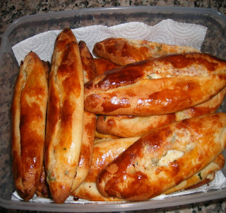 Unu kabartma tozu ile birlikte eleyin.Küp küp kesilmiş yağ, yoğurt ve tuzu katın.Hamur haline gelene kadar yoğurun.Hamurdan yumurta büyüklüğünde parçalar koparıp,yuvarlayın.Üzerlerine nemli bez örterek, 1 saat kadar bekletin.Daha sonra her parçayı yarım cm. kalınlığında açın.Ortasına maydanoz, beyaz peynir, kırmızı biber ve yumurtayı karıştırarak hazırladığınız içten koyun.Hamuru biraz üste doğru katlayıp, bastırın.Uçlarını yuvarlayın ve kayık şekli verin.Üzerine yumurta sürün, sıcak fırında 30-40 dakika kızarana dek pişirin.AFİYET OLSUN.