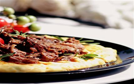 TEREYAĞINI bir tencereye alıp eritin ve eti 5 dakika çevirerek pişirin. Üzerine yemeklik doğranmış soğanları ekleyip 5 dakika kavurun. Daha sonra baharatları, dövülmüş sarmısak ve sirkeyi ilave edip bir-iki kez çevirin. Suyunu ekledikten sonra tencerenin kapağı kapalı olarak orta ateşte 2 saat pişmeye bırakın. Diğer taraftan sebzeli beşamel sosu hazırlamak için; sebzeleri ince kıyıp sıvıyağda kavurun. Üzerine 1 çay bardağı süt ekleyip 5 dakika pişirin. Ayrı bir yerde 2 çorba kaşığı tereyağını eritip 2 çorba kaşığı unu rengi dönene kadar kavurun. Kalan sütü azar azar üzerine ilave edin. Sürekli karıştırarak muhallebi kıvamına gelinceye kadar pişirin. Kavurduğunuz sebzeleri, tuz ve karabiberi üzerine ekleyip bir iki çevirdikten sonra ocaktan alın. Et pişince kemiklerini ayırın. Beşamel sosu servis tabağına alıp üzerine etleri yerleştirin. Kiraz domateslerle süsleyerek servis yapın.