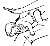 – Bebek hafif başaşağı gelecek şekilde yüzüstü tutunuz ve sırtına ard arda 4 kez vurunuz.
