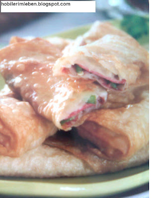 Malzemeler: 3 adet yufka- 12 dilim pastırma- 5 adet sivri biber- 24 dilim salam- 24 dilim kaşar peyniri.