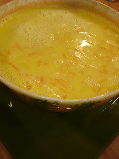 Tencereye tereyağı konur.Eriyince rendelenmiş havuçlar ilave edilerek bir iki dakika sotelenir.